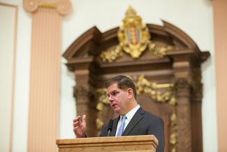“It’s a symbol that might not fit most cathedrals, but it fits this one, this unique place and Mayor Walsh at rededication Matthew Cavanaugh Boston Mayor Marty Walsh offers greetings during the rededication service. community.  You are not afraid to grow and expand your conversation about faith while holding on to your fundamental beliefs,” Walsh said.  “At night the shell lights up downtown and is a beacon of hope to all.  Throughout the years you’ve opened your doors to people from different faiths and different backgrounds.  You’ve been a source of support during times of joy and times of tragedy.  You reach out to the homeless men and women with blankets, warm meals and spiritual support, and I thank you for that.  The arms of this church are big enough to wrap around our entire city.”