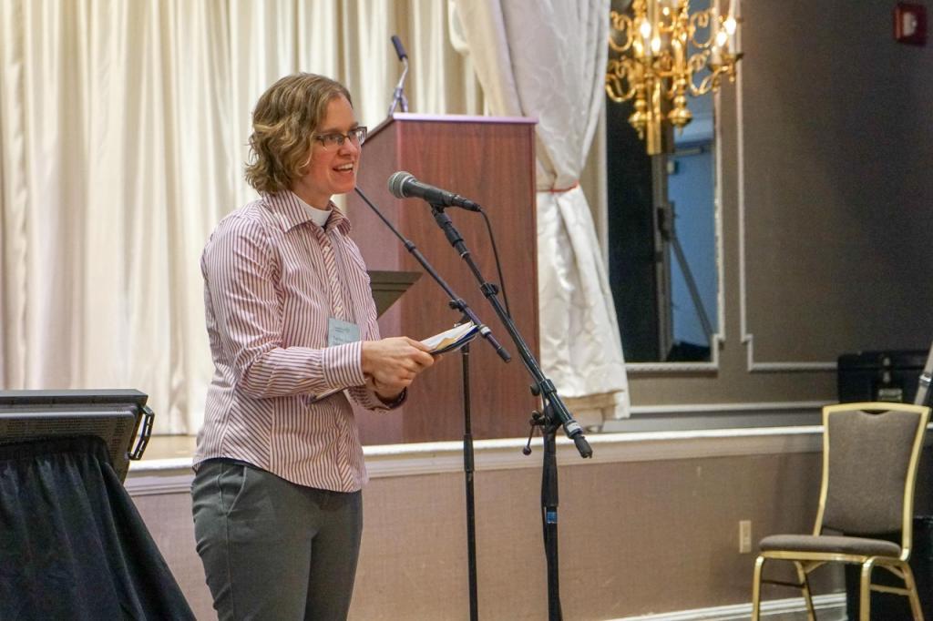 The Rev. Thea Keith-Lucas, Episcopal chaplain at MIT, helps present the proposed new mission strategy. Michelle Porche