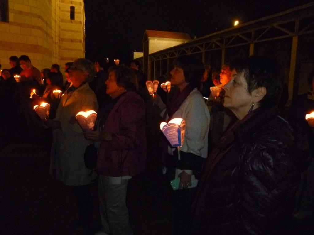 Pilgrims participate in a vigil at the Basilica of the Annunciation, Nazareth. Pete Jeffrey