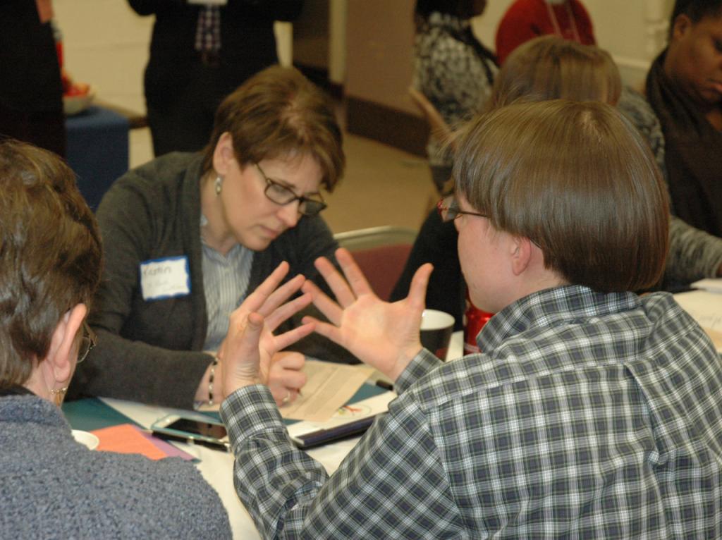 People paired up during the cafe session and worked together on "questions worth asking." Tracy J. Sukraw