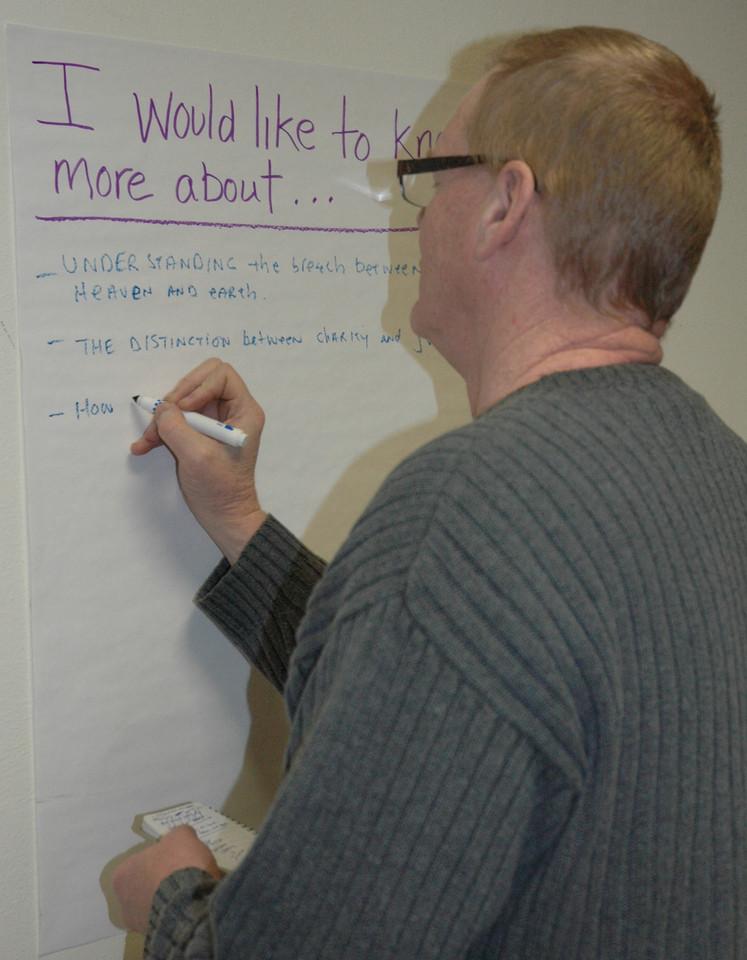 Mary Beth Mills-Curran from Episcopal City Mission got the group going in a cafe-style conversation on Micah 6:6-8. "What is our equivalent of a burnt offering?" she asked. "What does it mean to do justice in this day and age?" Tracy J. Sukraw