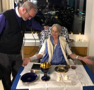 Accordingly, Bishop Alan M. Gates proceeded to ordain her a priest on Sunday, Feb. 2 at the Lahey Hospital and Medical Center in Burlington.  Also present were her family;  the Rev. Miriam Gelfer and the Rev. Sarah Conner, her pastors at the Parish of the Epiphany in Winchester; the Rev. Canon Edie Dolnikowski, on behalf of the diocesan community; and Diocese of Maine Bishop Thomas Brown, her pastor for the past decade.