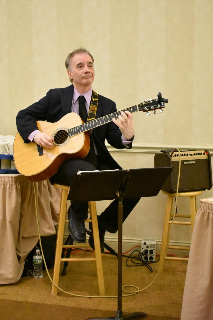 Guitarist Gregg Sullivan provides music for a social hour on Friday night before the program. Photo: Bridget K. Wood