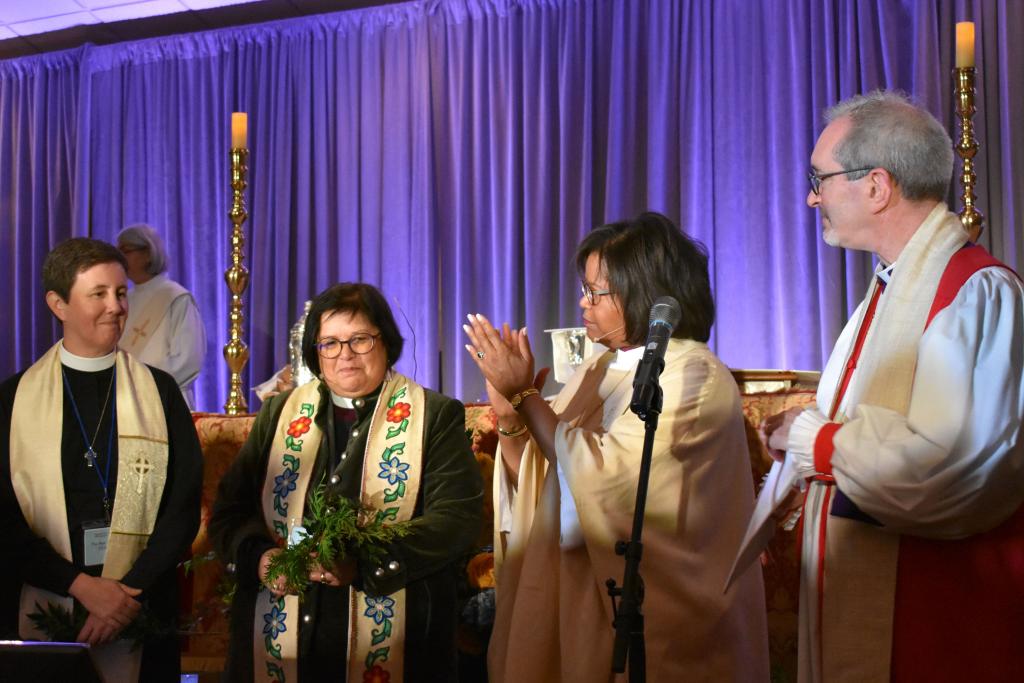 Diane Pound, outgoing executive assistant to Bishop Alan M. Gates receives sustained applause from convention-goers in recognition of her work. Photo: Bridget K. Wood